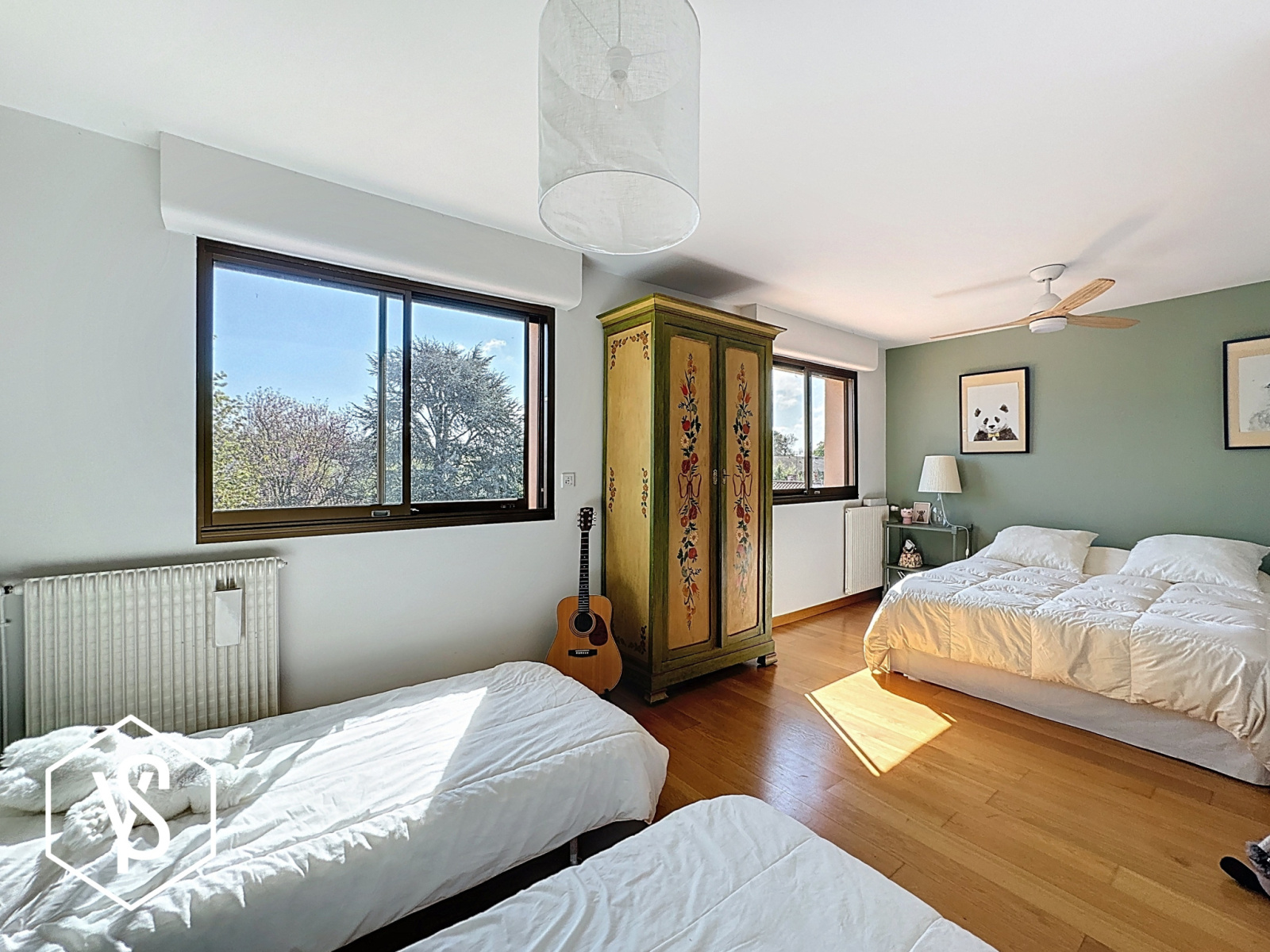 Pour compléter le niveau, le hall distribue un bureau fermé, une chambre avec salle d'eau (20m²), WC séparé ainsi qu'une grande buanderie qui donne accès au double garage fermé de 27m² avec rangements, deux places de parking abritées terminent le bien. Un accès au s/sol semi-enterré de plus de 70m² confirme l'étendue de cette maison d'Architecte (idéal pour salle de sport, de loisir, salle de jeux pour petits et grands ou tout simplement le rangement).