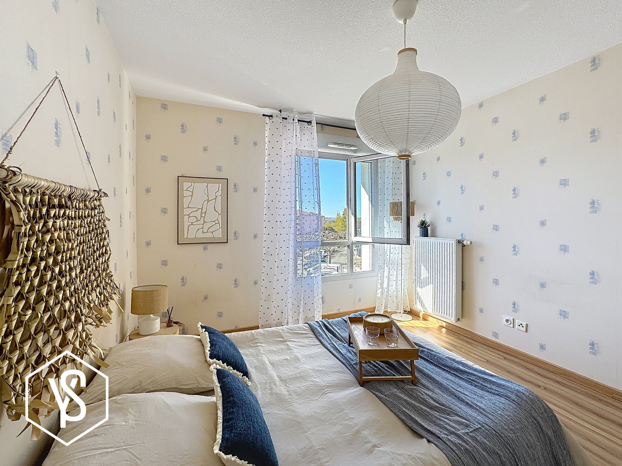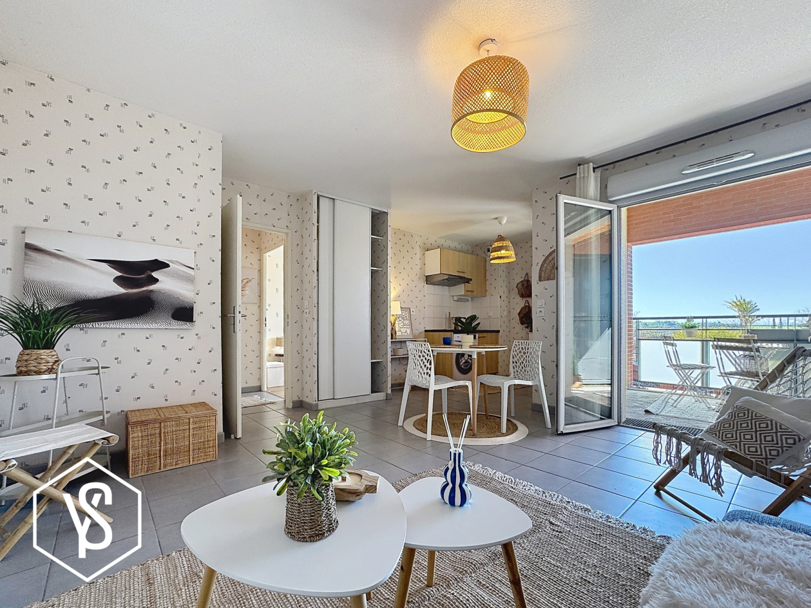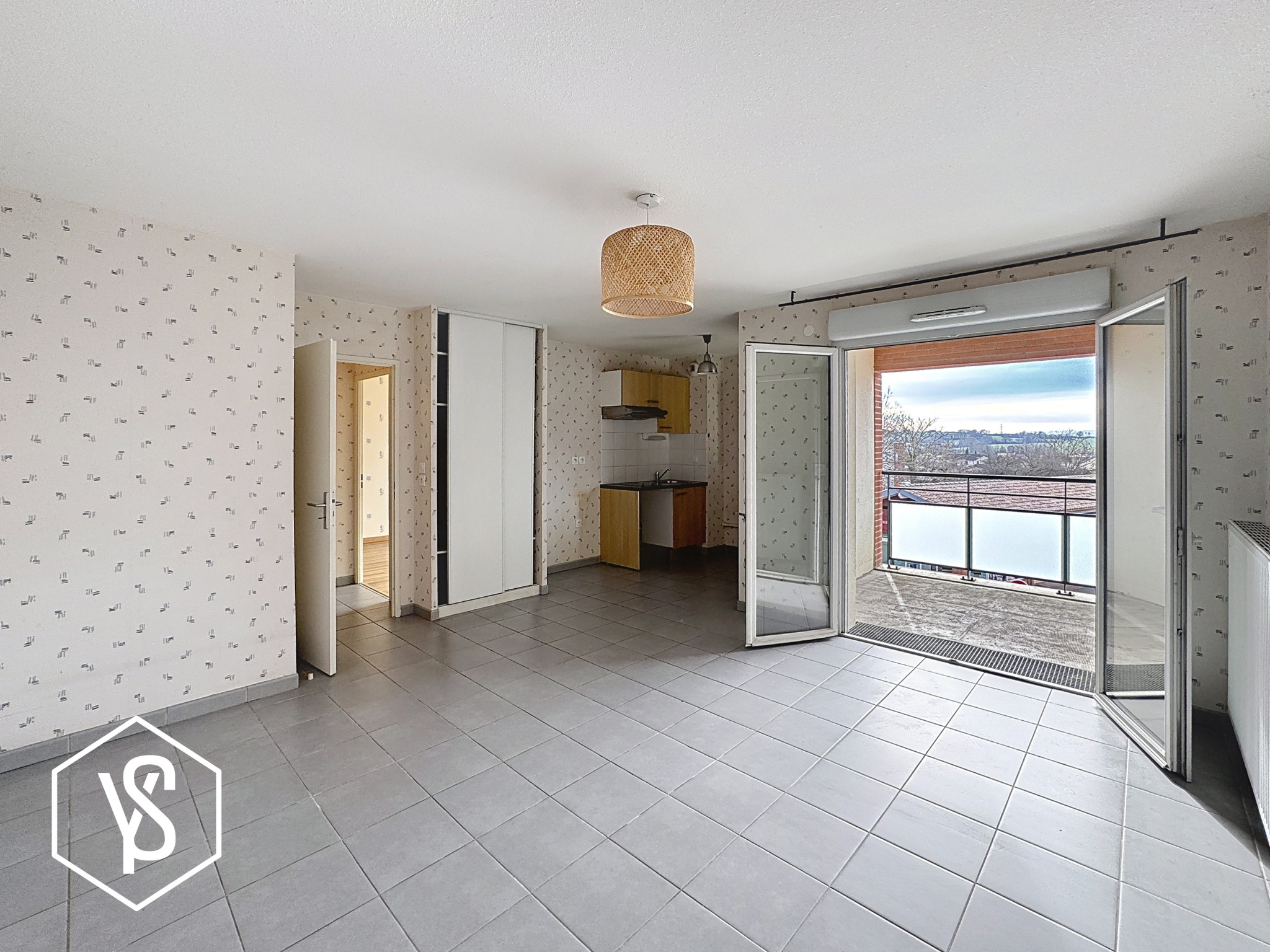 Pièce de vie de 24m², chambre séparée de 12,30m², entrée, salle d'eau/WC et balcon de 5m².