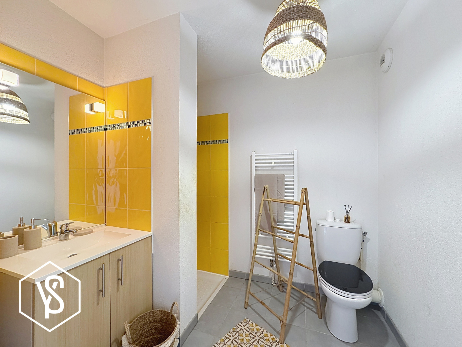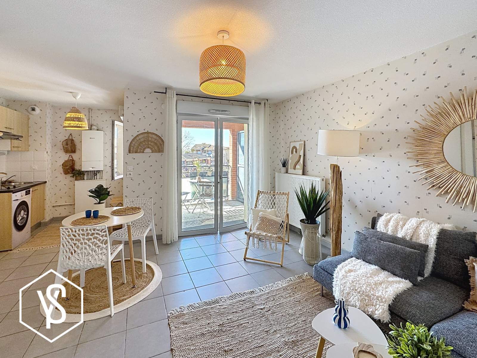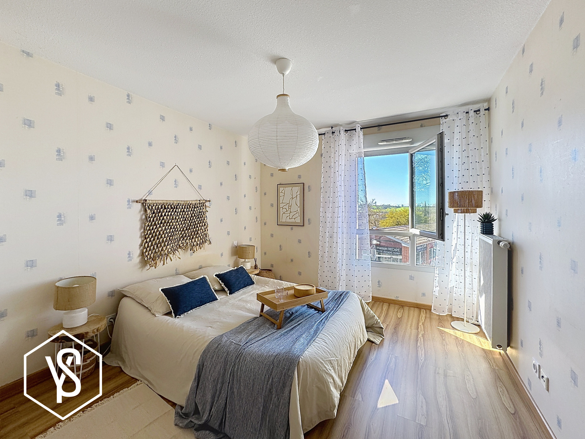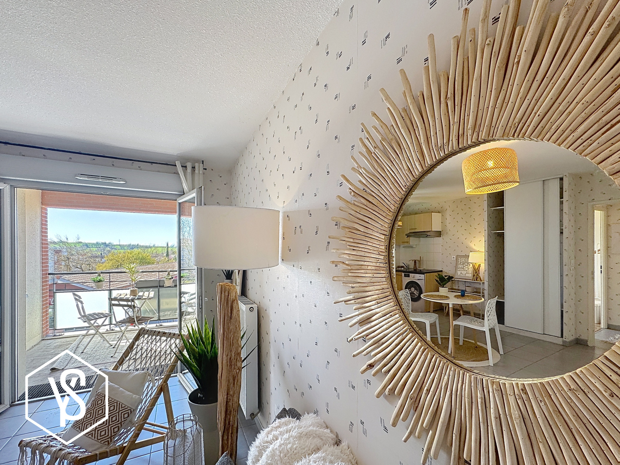 Pièce de vie de 24m², chambre séparée de 12,30m², entrée, salle d'eau/WC et balcon de 5m².
