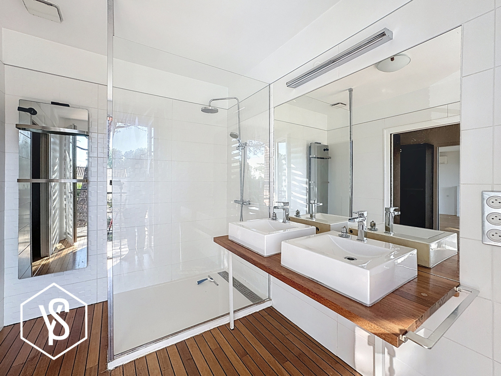 A l'étage : 3 chambres dont suite parentale de 46m² avec balcon filant sur façade , 2 chambres indépendantes, WC séparé et salle de bains/balnéo.