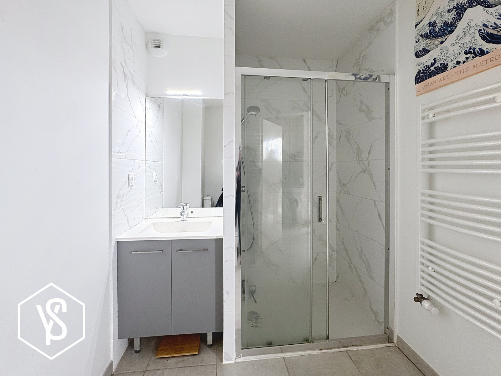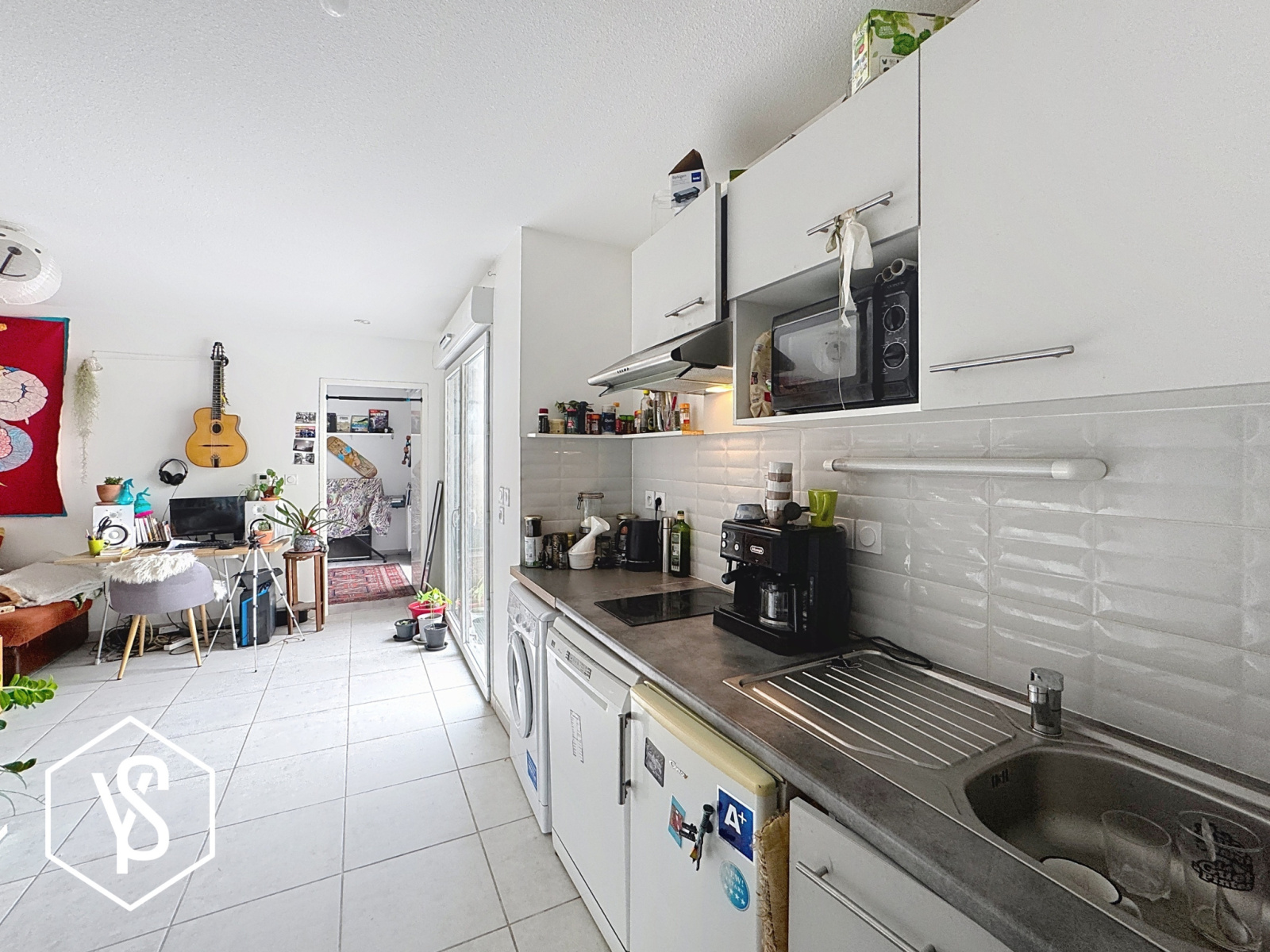 L'appartement est parfaitement bien réparti : entrée avec placard, coin cuisine, séjour ouvrant sur terrasse sans vis à vis, salle d'eau avc WC et chambre spacieuse de 13m². Bail en cours dont le loyer s'élève à 540€ HC + 60€ de provision.