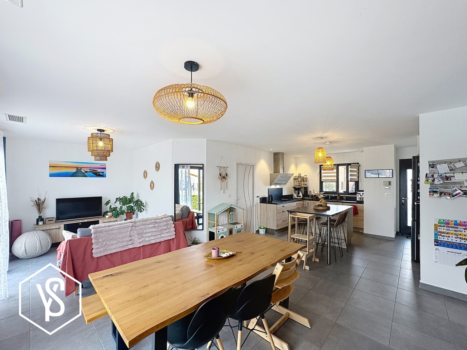 Les volumes sont astucieusement répartis : l'entrée dévoile une jolie pièce de vie de 40m² avec séjour et cuisine ouverte entièrement équipée. La pièce de vie qui ouvre de par ses baies vitrées sur une jolie terrasse exposée Sud-Est. Le couloir distribue 3 chambres chacune avec placards dont une parentale avec salle d'eau intégrée. Une salle de bains et des WC séparée complètent le coin nuit. Garage avec accès à une buanderie/cellier.