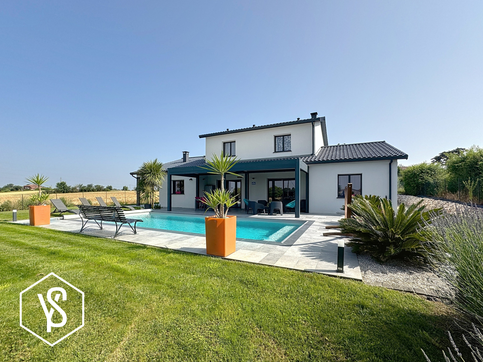Côté extérieur, le jardin, sans vis-à-vis, promet des instants de calme absolu au cœur d’un environnement préservé. Depuis la terrasse ombragée par une pergola bioclimatique, vous plongerez dans une piscine 9x4 sécurisée.