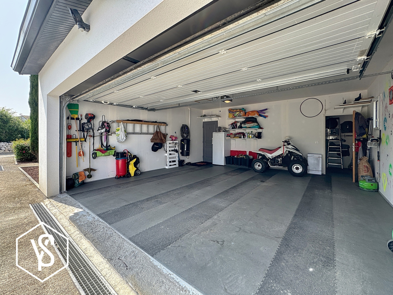 Le niveau rez-de-chaussée est complété par un double garage automatisé et d'un petit atelier offrant un potentiel supplémentaire de 40m².