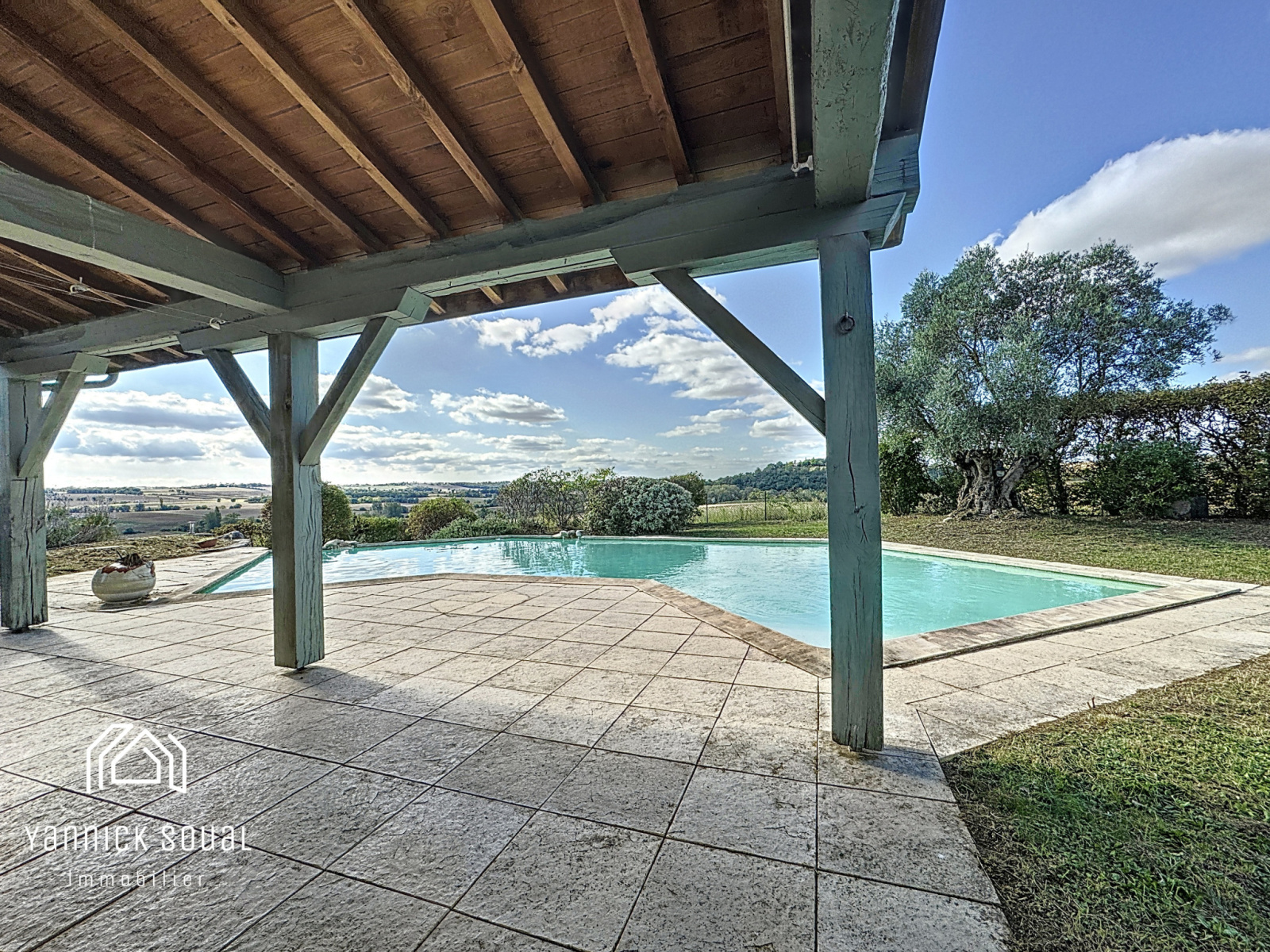Côté extérieur : à l'abri des regards, la piscine s'entrelace sur un cadre de vie et sur une végétation très agréable, où la vie s'articule autour de la terrasse couverte.