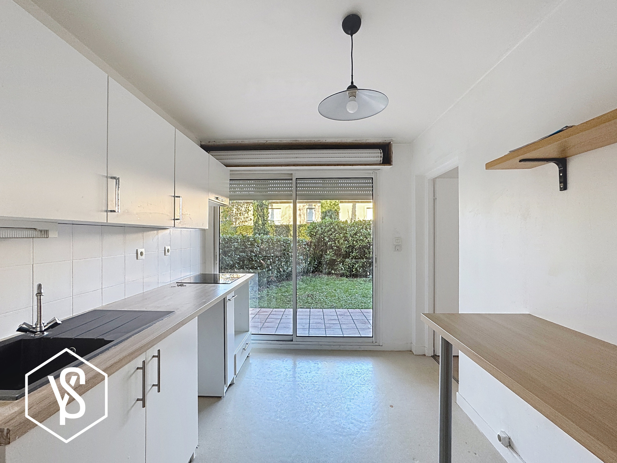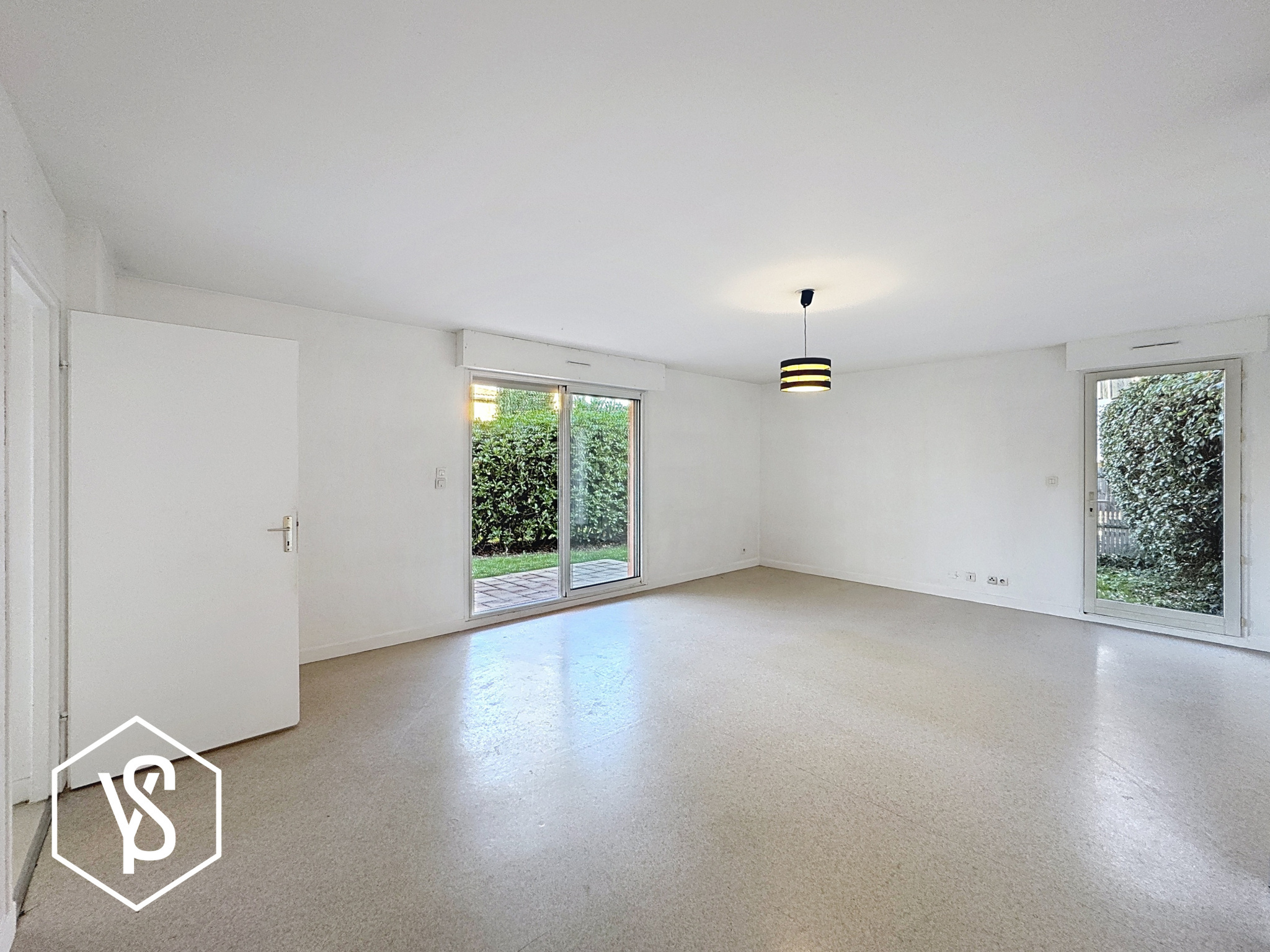 Trés bel espace vie de 32M² donnant sur une double terrasse, exposée sud-ouest, cuisine séparée avec accés direct sur jardin ; 2 chambres et 1 salle de bains avec douche et baignoire.