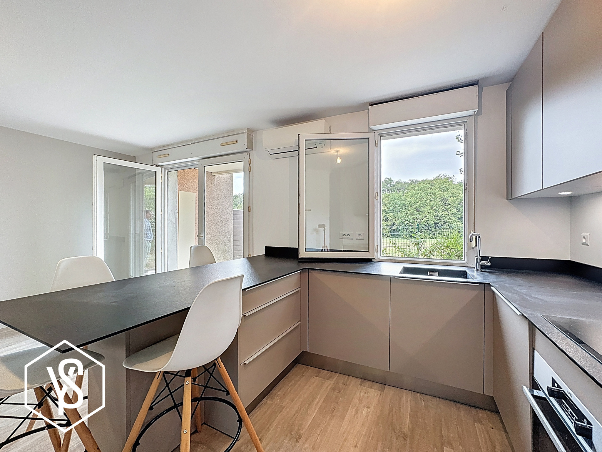 Balma (31130)Entièrement rénové, l'appartement "VAL VERDE" se situe dans petite coproprièté très bien entretenue sur la belle commune de BALMA. De type T3, il developpe 53m² en rez-de-jardin à usage privatif de 75m² avec terrasse couverte, complètement clos à l'horizon verdoyant et au calme absolu.