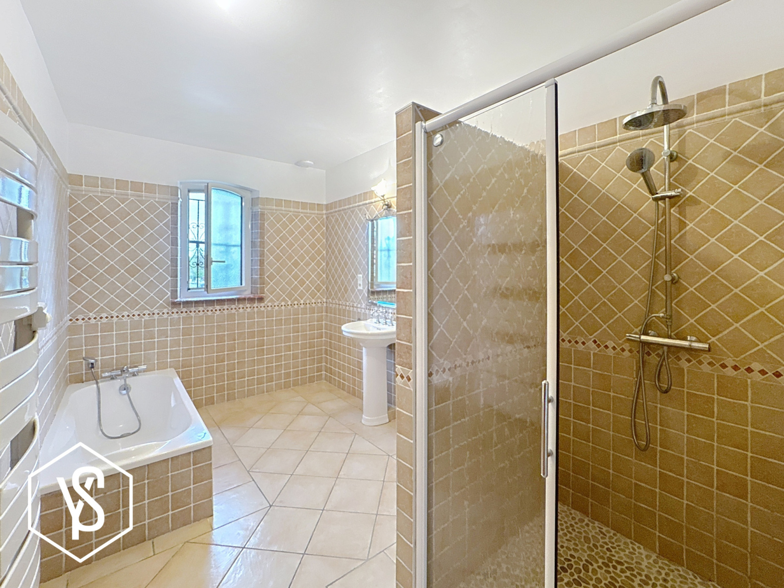 Le chauffage est assuré par le sol (gaz de ville), une climatisation réversible assure le confort en Eté.